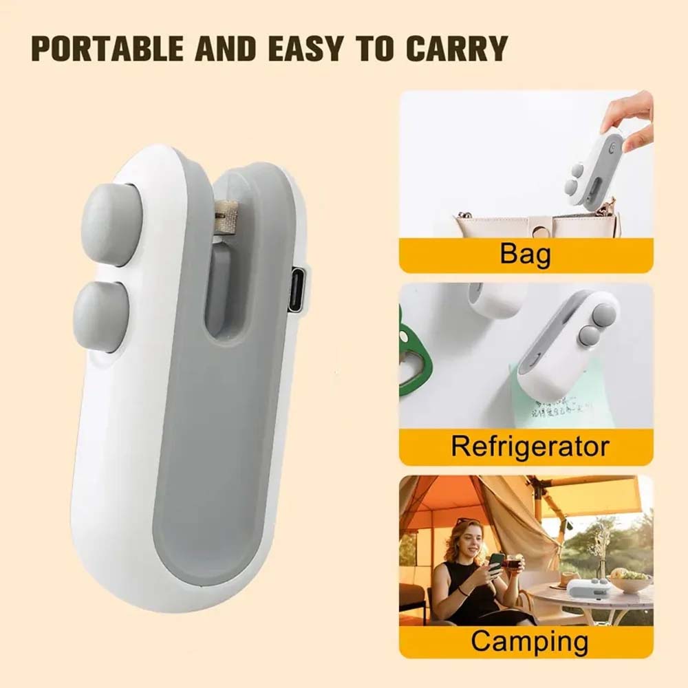 Perfect for home, travel, or camping, it works on a variety of food bags to keep treats fresh and crisp. With its 2-in-1 sealing and cutting design, this smart tool is always ready for action.